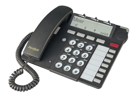 Analoges Ergonomie-Telefon, intuitiv und einfach bedienbar, mit extra großer Anzeige und den Standard-Funktionen Notruf, Rücksprechen, Freisprechen und weiteren Sicherheitsmerkmalen. Als Nebenstelle ohne Batterien und Netzteil einsetzbar.